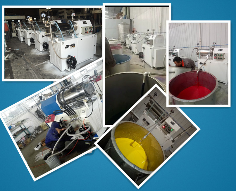 臥式密閉砂磨機(jī)是一種采用濕法研磨分散、筒體水平安裝、連續(xù)密閉生產(chǎn)的化工設(shè)備;型氣動雙隔膜泵(或齒輪泵)將經(jīng)過預(yù)分散、潤濕處理的固液相混合物料輸入筒體內(nèi),物料和筒體內(nèi)的研磨介質(zhì)一起被高速旋轉(zhuǎn)的分散器組所攪動,使物料中的固體顆粒和研磨介質(zhì)間產(chǎn)生強(qiáng)烈的碰撞、剪切,在短時間內(nèi)達(dá)到物料顆粒的磨細(xì)和分散聚集體的目的。是生產(chǎn)油漆、油墨、染料等產(chǎn)品的常用設(shè)備