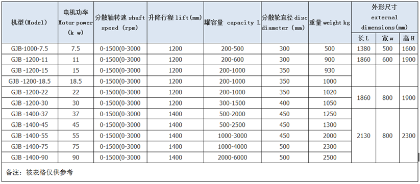 l 分散盤(pán)型式:平盤(pán)鋸齒式、三義槳式、碟式、其它形式;