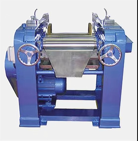 三輥研磨機適用膏體或高粘度物料使用。該機通過水平的三根輥筒的表面相互擠壓,手動式調(diào)節(jié)輥筒之間的間距,以不同速度的摩擦達到研磨效果。可裝有緊急制動按鈕,防止落入異物導致的設備損壞。輥子使用特殊硬質(zhì)合金澆鑄而成;也可以使用大理石材質(zhì)。傳動采用鏈條傳動、齒輪調(diào)輥。